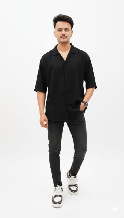 MENS HALF SLEEVR SORO BLACK V NECK DROP SHOULDER SHIRT